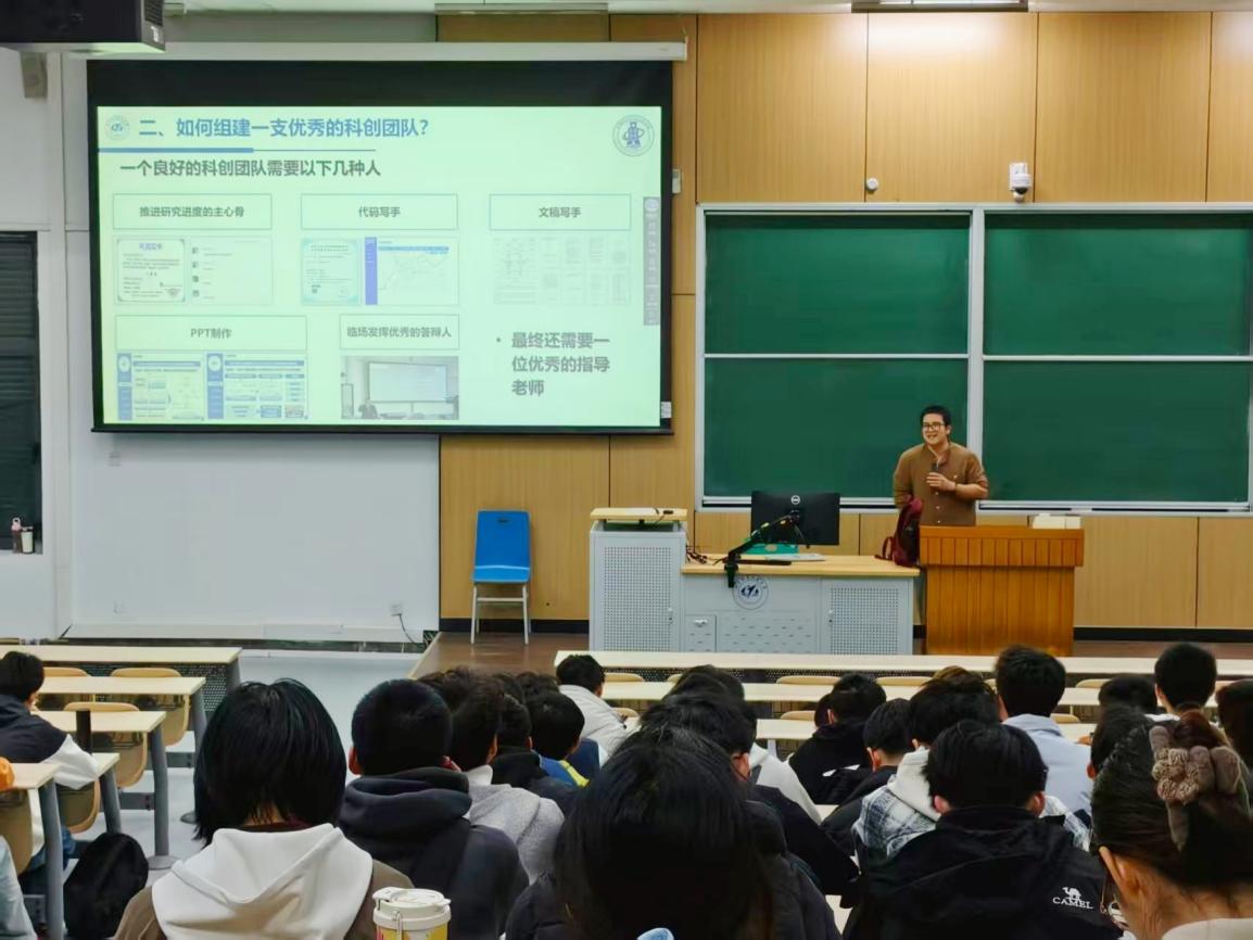 本次分享会上两位同学结合自身参赛经历,从不同维度分享了宝贵经验,为同学们解答了在科创备赛中的困惑,进一步激发了大家参与科技创新的热情,助力同学们在科创道路上稳步前行。